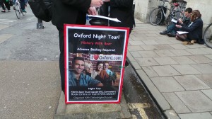 Daca doriți un tur free de 2 ore cautați la cei de la Footprints Oxford Walking Tours și cu ei veți vedea Christ Church, All Souls College, Trinity College, Oriel College, biblioteca Bodleian, Camera Radclife sau Biserica de la Universitatea St Mary. Programul este de luni pana vineri de la ora 11 sau 14 si sîmbatăde la ora 11, 12:30 si 14 iar la sfârșit primiți un autocolant pentru reduceri în mai multe magazine iar punctul de plecare este din centrul orașului vizavi de Fudge 5 Broad Street unde veți vedea o bicicleta verde și nu este nevoie sa faceți rezervare decât dacă sunteți un grup mare, caz in care va fi un tur privat. La sfârșit puteți sa plătiți cât vreți voi în funcție cât de mult v-a plăcut. Am fost și eu în acest tur unde m-am simțit foarte bine si am învățat multe lucruri despre istoria Oxfordului. Pentru mai multe detalii intrați pe www.footprints- tours.com.