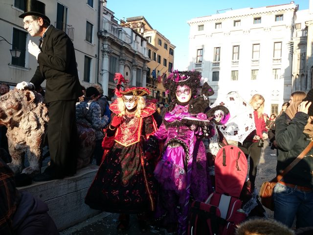 E greu de descris atmosfera din Venetia in timpul carnavalului. Se pot scrie romane. Intr-un oras sufocat de turisti in orice zi din an, Carnavalul aduna atat de multi oameni incat te strecori cu greu. Evenimentele sunt in mai multe locuri si este greu de ajuns sa le vezi cu adevarat. Poate doar daca iti ocupi un loc in fata cu o ora inainte. Totul devine mai scump decat de obicei si locul la masa se plateste in afara de plata consumatiei. Poti sa inchiriezi costume daca vrei sa participi activ. De altfel, in Piata si aiurea pe strada toti sunt mai mult decat bucurosi sa faca poze cu tine. Nu ezita si cere-le.