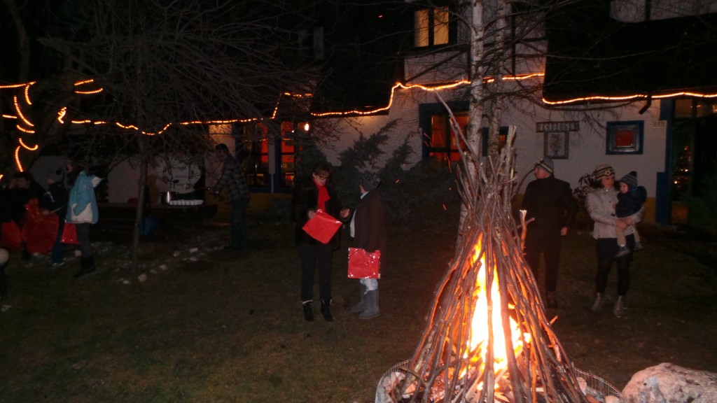 Am băut vin fiert, am făcut frigărui la focul de tabără, am dat drumul la lampioane şi ne-am pus dorinţe ( nu, nu am dat foc la nimic! )…apoi la căldură la masă, la vin, la concursul de dans organizat pentru noi. Am mers prin pădure la cascadă şi la Mânăstirea Bran, am jucat tenis de masă, table, ne-am odihnit, am savurat liniştea dimineţii şi ne-am jucat cu zăpada ( pentru ca DA, a nins pe 26! ), s-a postat pe internet ( wi-fi gratis ) fiecare poză reuşită.